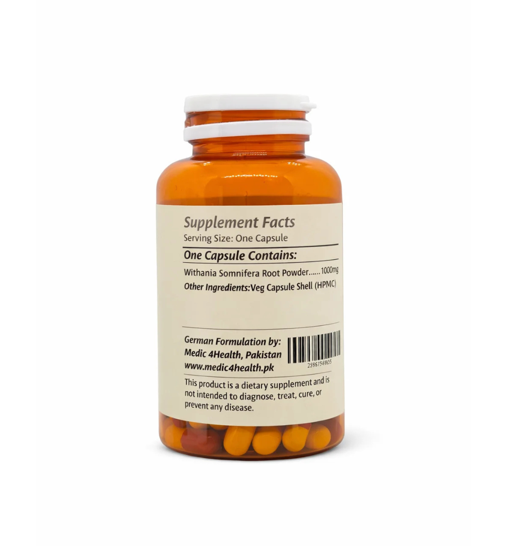 Ashwagandha Capsules are formulated as structured adaptogenic support for individuals operating under sustained physical, hormonal, and cognitive pressure. Modern stress is no longer occasional it is systemic, often expressed through disrupted sleep, elevated cortisol, fatigue, and mental overload. This formulation delivers 1000 mg of full-spectrum ashwagandha root per capsule in a clean vegetarian HPMC shell  no extracts, no dilution strategies, and no synthetic enhancement. Just the preserved whole-root botanical matrix, precisely dosed.